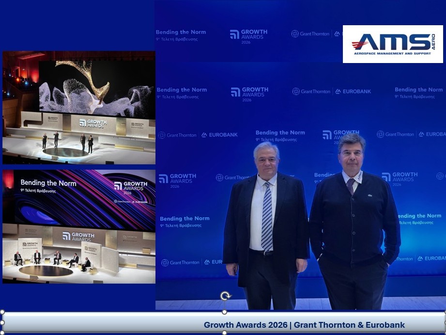 Athens, March 3, 2026 – AMS AERO’s CEO, Mr. Elias Kokkotas, and Head Accountant, Mr. Kostas Zourtsanos, attended the 9th Growth Awards 2026 ceremony, held at the Athens Concert Hall, on Tuesday and organized by Eurobank and Grant Thornton.